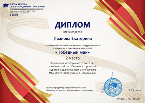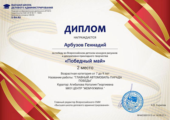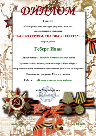 Всероссийский детский конкурс рисунков и декоративно-прикладного творчества "Победный май"