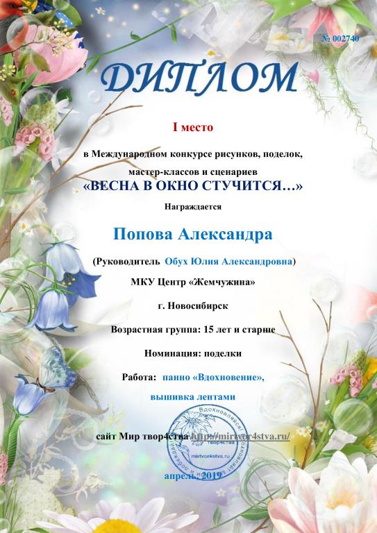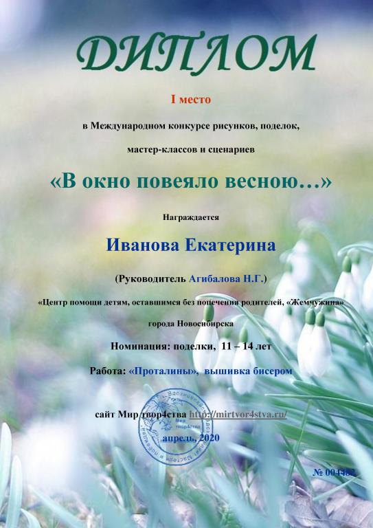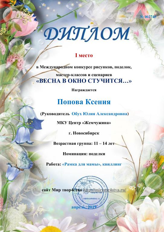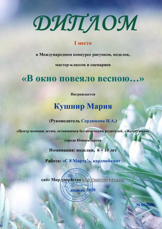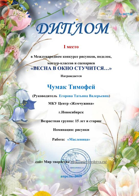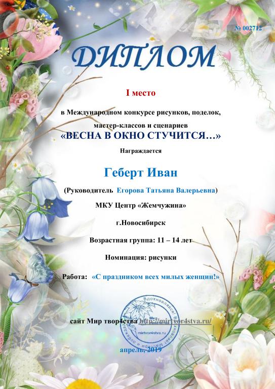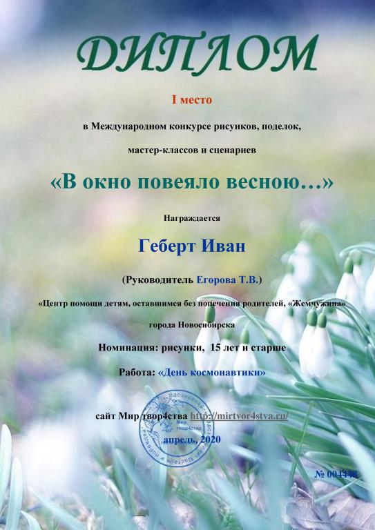 Международные конкурсы детского творчества "Весна в окно стучится"
