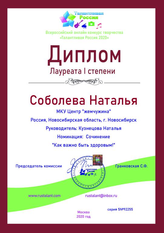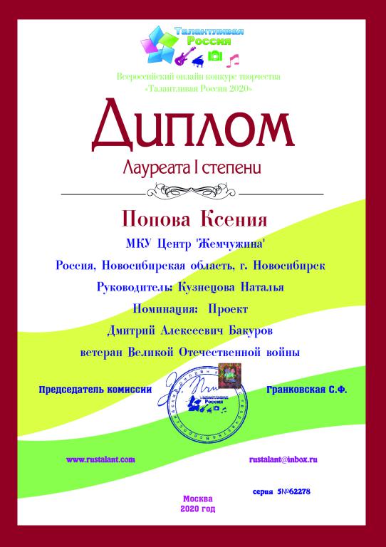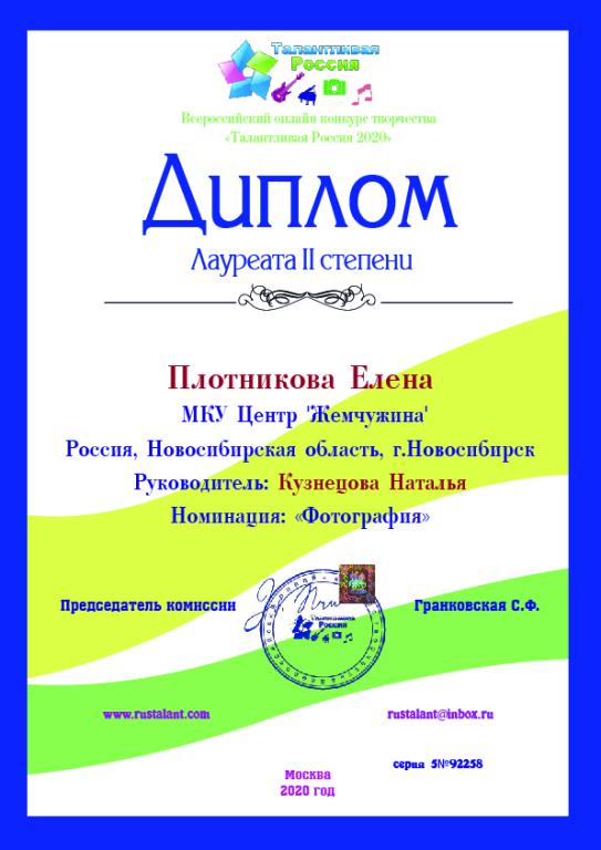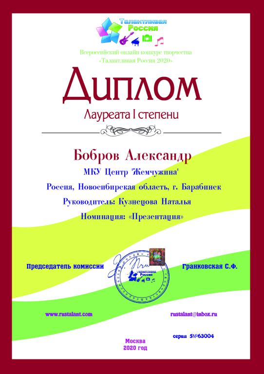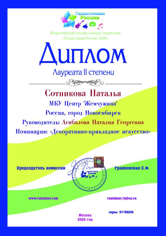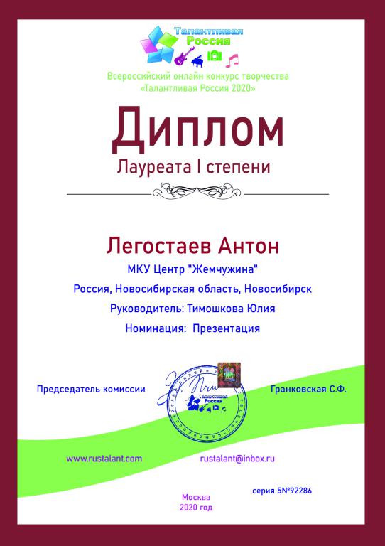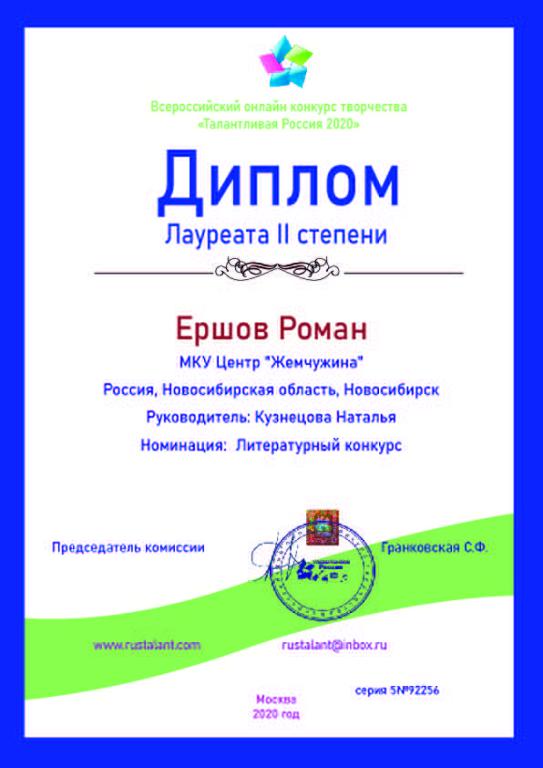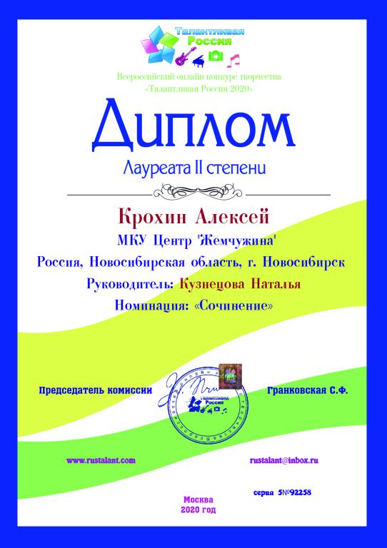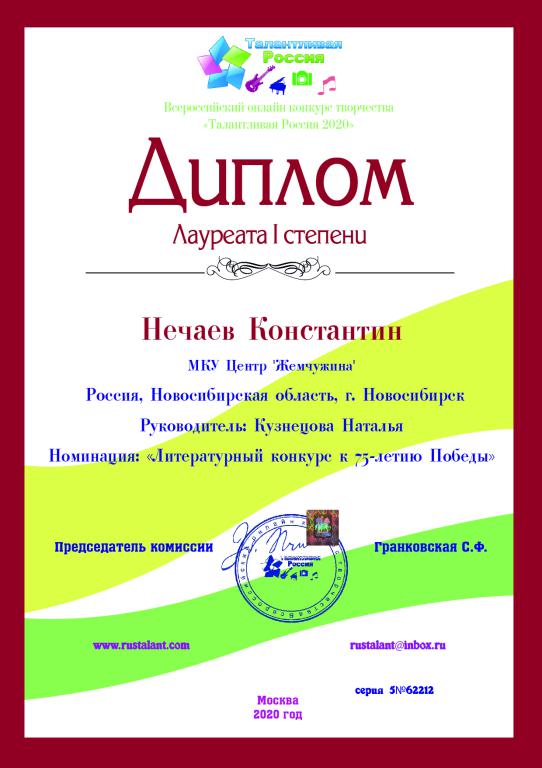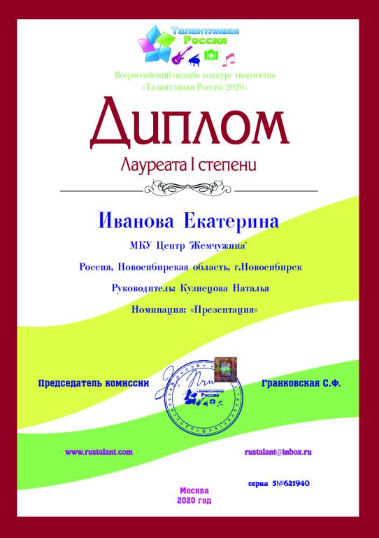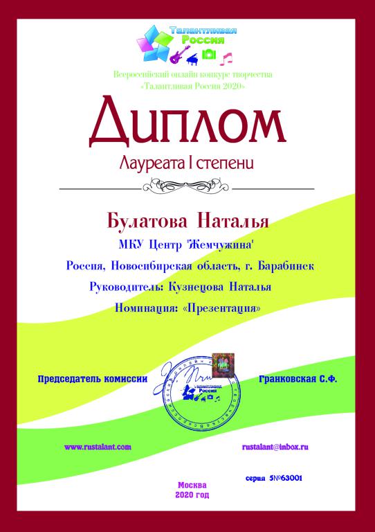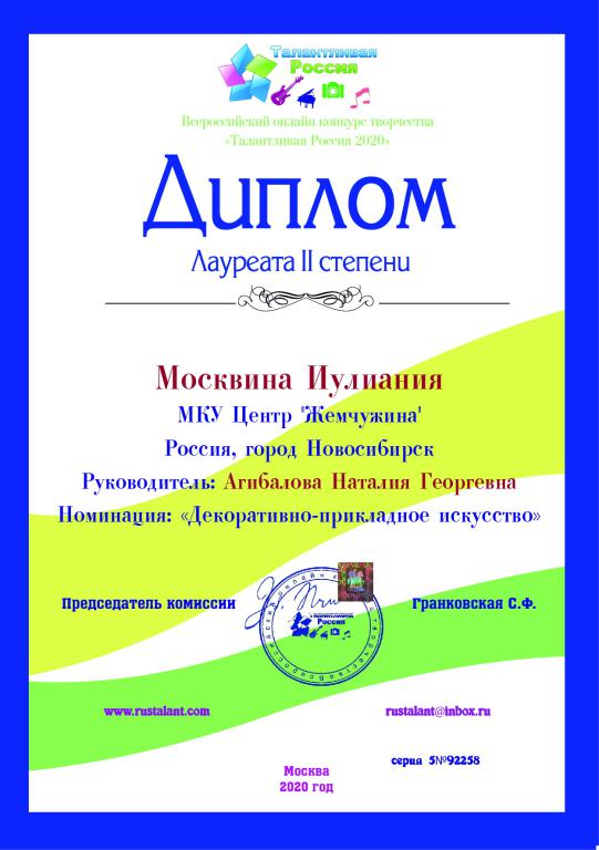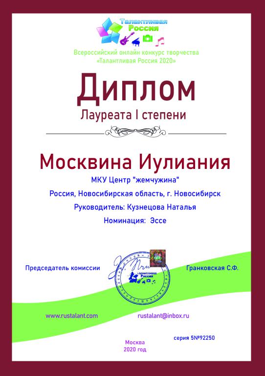 Всероссийский онлайн конкурс творчества "Талантливая Россия 2020"