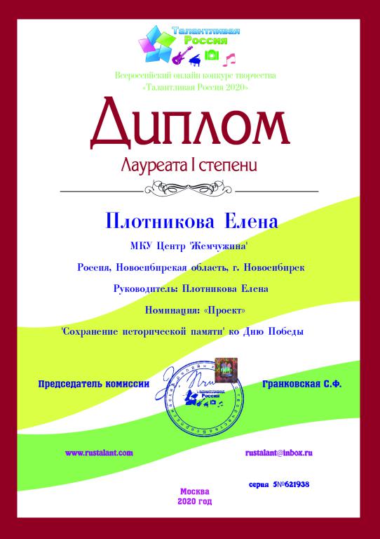 Всероссийский проект "Память Победы", посвященный 75-ой годовщине Победы в Великой Отечественной войне