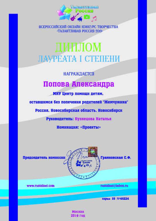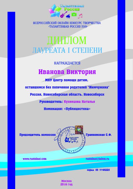 Всероссийский онлайн конкурс творчества "Талантливая Россия 2019"