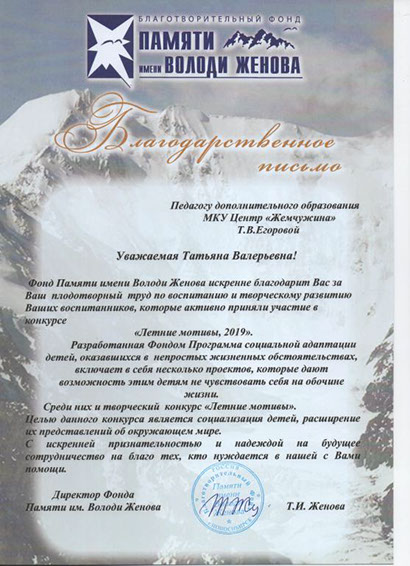 Творческие конкурсы Благотворительного Фонда памяти имени Володи Женова