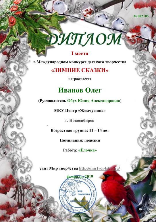 Международный конкурс детского творчества "Чудеса волшебницы зимы"