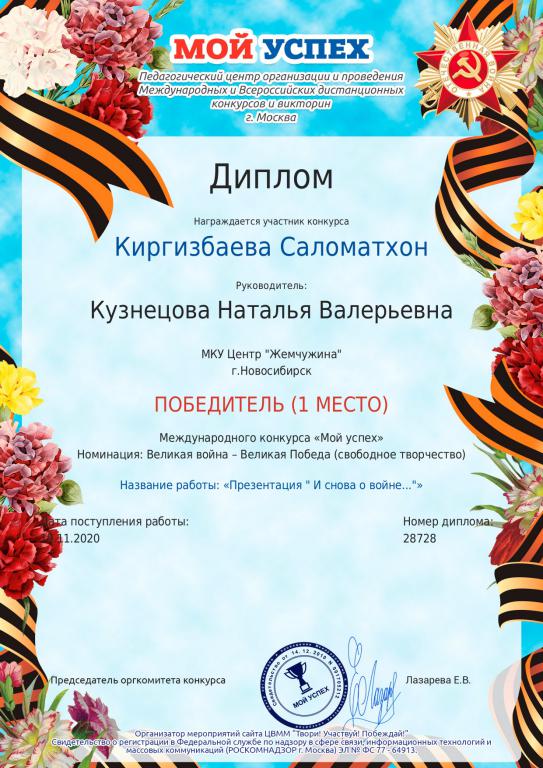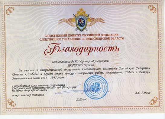 Конкурс творческих работ "Вместе к Победе" Следственного комитета РФ по Новосибирской области