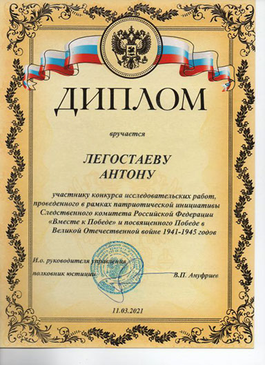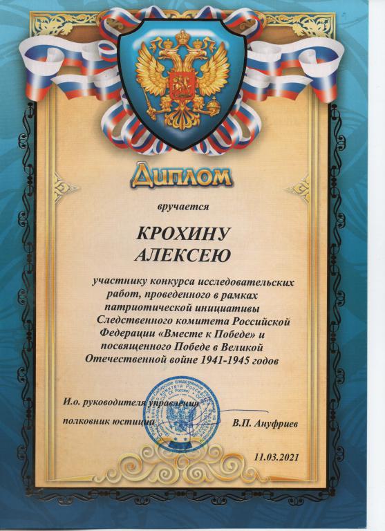 Конкурс исследовательских работ Следственного комитета РФ "Вместе к Победе"