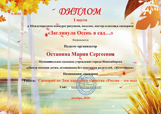 Международный конкурс детского творчества "Здравствуй, осень!"