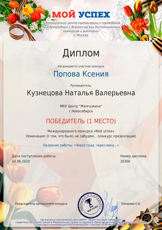 Международные конкурсы детского творчества "Через века, через года,- Помните!"