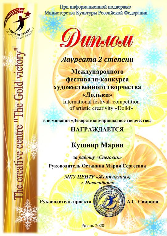 Международный фестиваль - конкурс художественного творчества "Дольки"