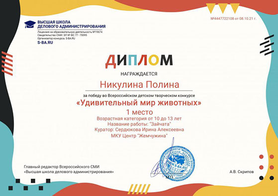 Всероссийский детский творческий конкурс "Удивительный мир животных"