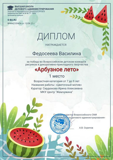 Всероссийский детский конкурс рисунков и декоративно-прикладного творчества "Арбузное лето"