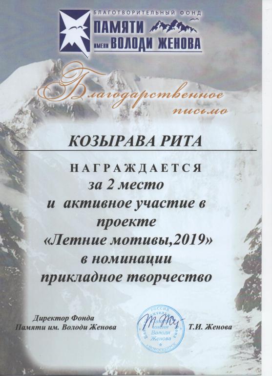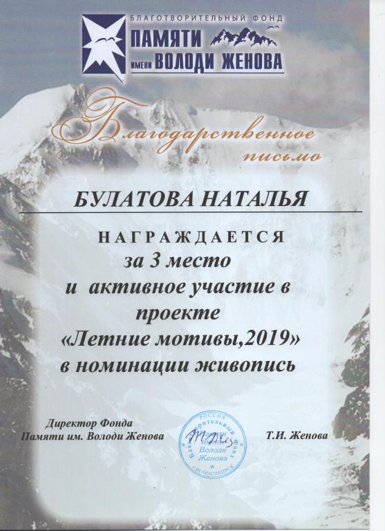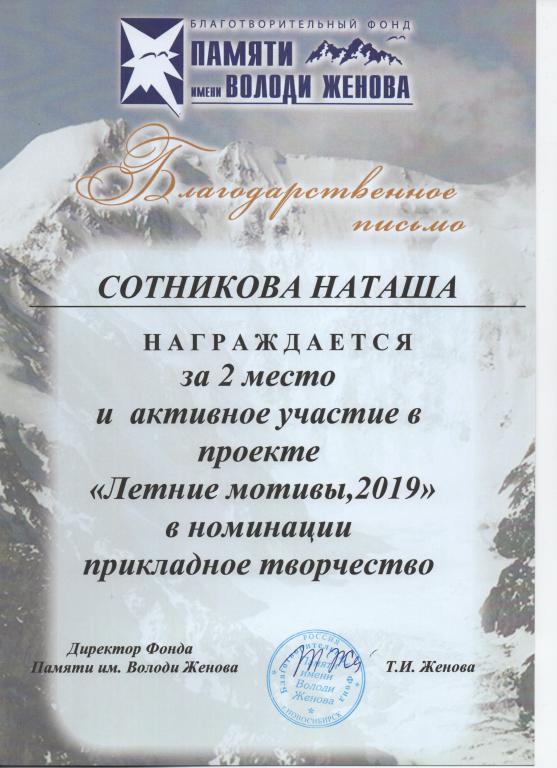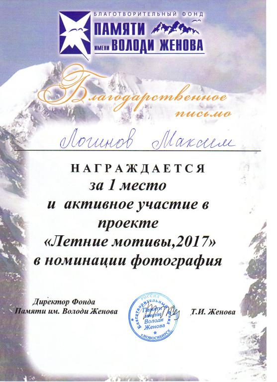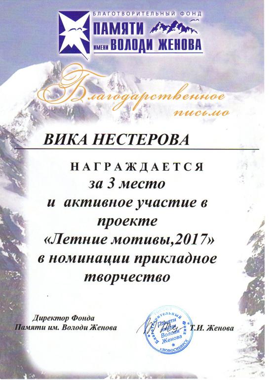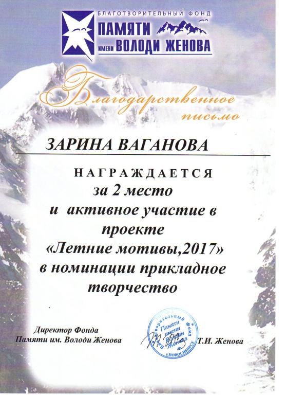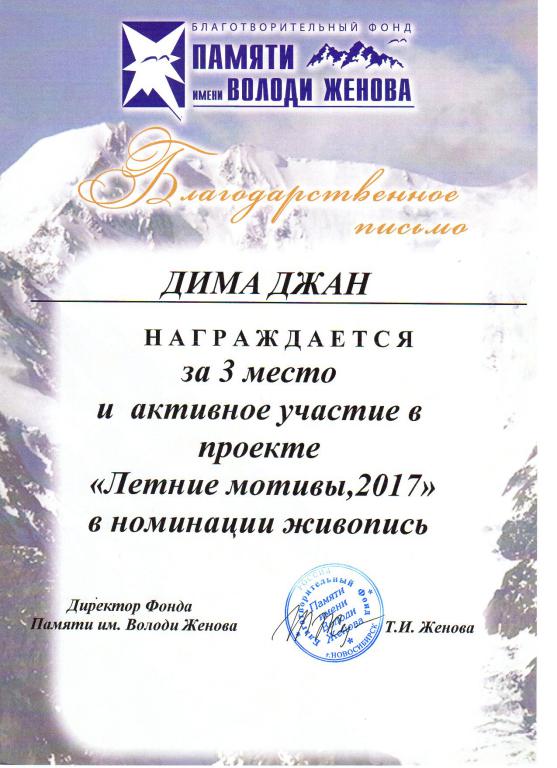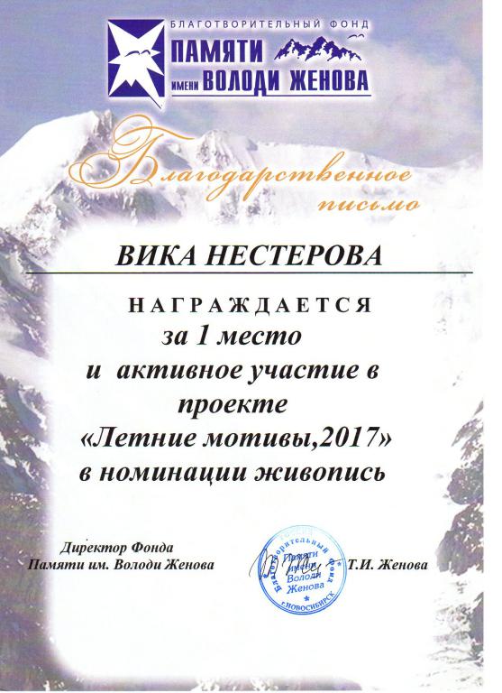 Конкурс БФ Памяти имени Володи Женова "Летние мотивы - 2017"