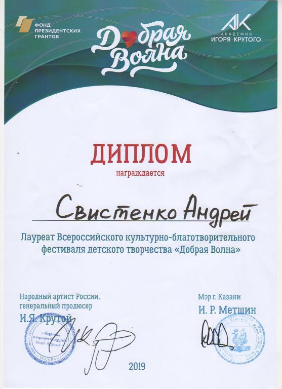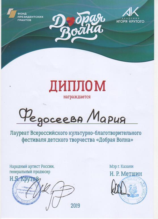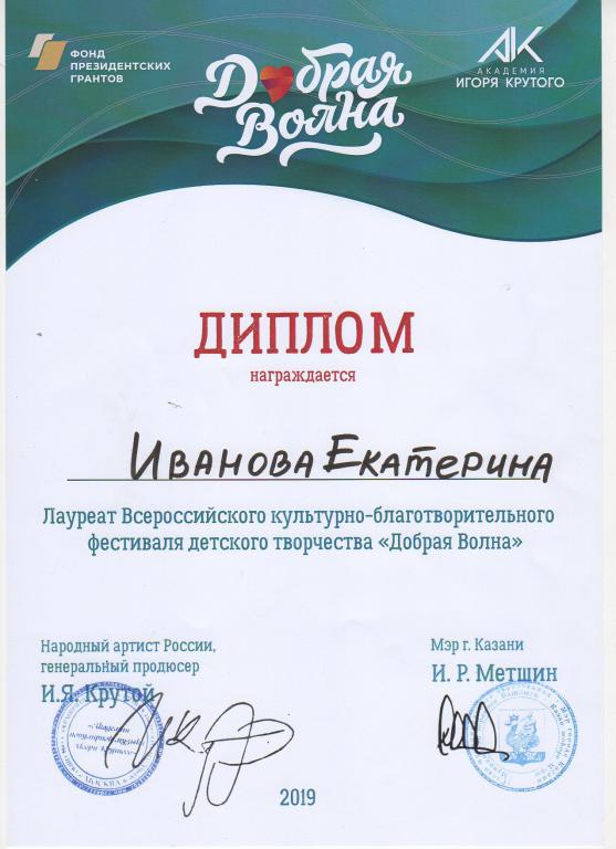 Всероссийский культурно-благотворительный фестиваль детского творчества "Добрая волна"